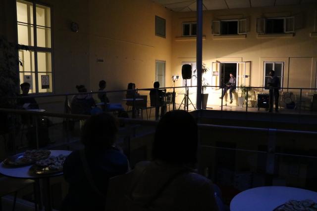 Ze strany organizátorů to však nebylo vše a připojili malý bonus. Proto se okolo 21 hodiny mohli všichni sejít opět v Bajkazylu a absolvovat ještě jedno čtení, tentokrát autorské. Ze své publikace Nejlepší kniha o fake news!!! přečetl vybrané ukázky M. Gregor a korunoval celkově vydařený průběh i atmosféru třetí brněnské Noci literatury.