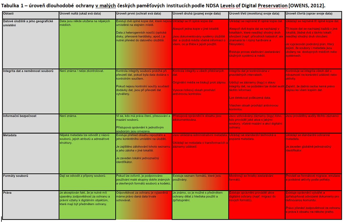 ![Úroveň dlouhodobé ochrany ve velkých českých paměťových institucích podle NDSA Levels of Digital Preservation [OWENS, 2012] alt obrazku](/sites/duha.mzk.cz/files/souboryredakce/Tabulka_2_0.jpg)