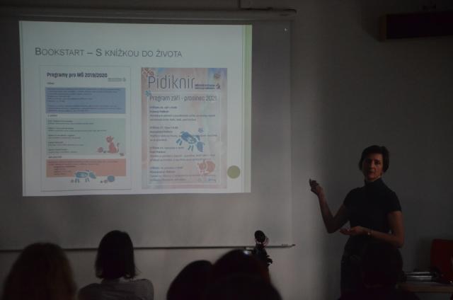 Odpolední část seminář pak byla věnována dobré praxi z knihoven. Prezentace plné inspirací ohledně práce s dětskými čtenáři, uživateli, se školami i s rodinami a dalšími partnery, přednesli kolegové a kolegyně z městských knihoven: Rožnov pod Radhoštěm (Jitka Slezáková), Litvínov (Vladimír Kraft), Třinec (Marika Zadembská), Hradec Králové (Barbora Čižinská a Kateřina Hubertová) a z Knihovny Jiřího Mahena v Brně (Helena Chábová) a následující den také ze Vsetína (Ludmila Holbíková – vše kolem služeb pro dětské čtenáře, Petra Románková – roboti a VR a Jana Vaculíková – stolní hry a venkovní hledačky). V příspěvcích z knihoven nechyběla témata kyberšikany, online forem práce s uživateli, roboheren a technologických koutků v knihovnách, představení projektu S knížkou do života a aktivit s ním spojených, spolupráce se školami, podpora dětského čtenářství i různých forem divadel a scénického čtení, soutěže pro děti a mnoho dalšího.
