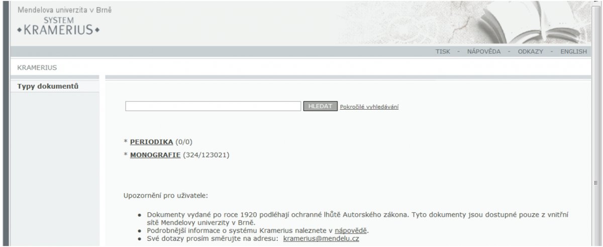 Obr.7: Dále je z úvodní stránky katalogu odkaz na vyhledávání v Krameriovi.