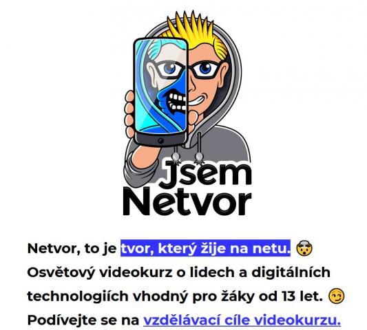 Národní úřad pro kybernetickou a informační bezpečnost vytvořil osvětový produkt Jsem netvor, tvor, který žije na netu,[2] zpracovaný formou videokurzu s youtubery, který je určen primárně žákům 8. a 9. tříd ZŠ a odpovídajících ročníků víceletých gymnázií. Videokurz seznamuje žáky s otázkami kybernetické bezpečnosti a informuje je jako běžné uživatele digitálních technologií a internetu o jejich technických, sociálních i etických aspektech. Výběr témat, která videokurz zpracovává, vychází z velkého mapování, do kterého se zapojilo 3 300 žáků z cílové skupiny. Do vývoje videokurzu byly také zapojeny kontrolní skupiny žáků, aby výsledný produkt reagoval na jejich skutečné informační a vzdělávací potřeby. [3] Žáci se dozví například o bezpečnostních aspektech umělé inteligence, chytrých zařízení a internetu věcí, aplikací nebo třeba šifrované komunikaci. Popularizovat a vysvětlit tato témata pomohlo celkem deset známých youtuberů. Důležité také je, že témata videokurzu nachází ukotvení i v Rámcovém vzdělávacím programu pro základní vzdělávání (RVP ZV) a přispívají k naplňování vybraných bodů tzv. nové informatiky.[4] Záštitu celému videokurzu udělilo Ministerstvo školství, mládeže a tělovýchovy, což může být pro školy atraktivní při propojování formálního a neformálního vzdělávání.