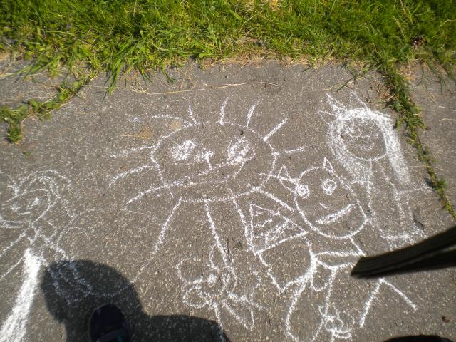 Letos akce probíhala trochu netradičně, protože jsme se nemohli sejít v knihovně. Četli jsme tedy rovnou venku a otevřeli knihu Františka Hrubína Dvakrát sedm pohádek, která je plná českých pohádek vyprávěných v půvabných verších. Přečetla jsem dětem První pohádku, Perníkovou chaloupku a Malou pohádku o řepě. Povídali jsme si o pohádkových postavách, jako jsou princezny, rytíři, draci, ježibaby a víly, děti se nechaly inspirovat a namalovaly na chodníku to, co je nejvíce zaujalo. U žádného obrázku nesmělo chybět sluníčko, protože to nám po celou dobu vesele svítilo na naše pohádkové malování, někdo si troufl na hrad, jiný maloval Jeníčka a Mařenku, princezny byly krásné, měly nádherné šaty a nechyběla korunka na hlavě. Samozřejmě se našel i chytrolín, který prohlásil: „Já namaluju tank“, přidal se spolužák „A já namaluju dinosaura“. Děti mají bujnou fantazii, obrázky byly povedené a nebylo třeba řešit, že některé nezapadaly přímo do našeho tématu. Perníková chaloupka se zaparkovaným autem byla nakonec taky moc pěkná.