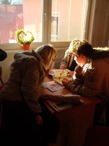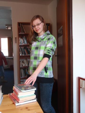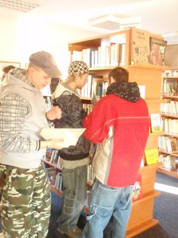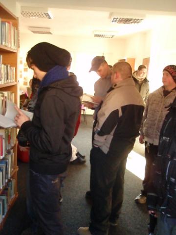 jako čtenáři a ostatní je většinou doprovází. V úterní podvečery tak podle zájmů studentů společně vybíráme knihy a besedujeme o nich. Na podzim jsme se věnovali výkladům jmen a příjmení, kdy byl jen Jirka zklamaný, že jsme nenašli význam jeho příjmení. S budoucími kuchaři a cukráři Honzou, Jirkou a Denisou jsme v předvánočním čase listovali kuchařkami a hledali vhodné recepty na cukroví, které by sami zvládli. S Tomášem a Davidem jsme zase prohlíželi úpravy zahrad a zahradních plotů, protože se oba učí v oboru opravářské a zahradnické práce. Za těch pár měsíců se již známe a tak vím, že zručný malíř Honza si vždy najde v knize předlohu a nakreslí podle ní obrázek, který mě v knihovně nechá na památku. Největší čtenářka Esterka čte převážně fantazii a romantické knížky. Kluci dávají přednost knihám o druhé světové válce nebo o pravěku. Často také mnozí sáhnou po časopisech o přírodě a budete se asi divit, ale o počítač v knihovně moc veliký zájem neprojevují. Studenti mi sami říkají, že ho mají na internátě a do knihovny si chodí přece pro knihy! A to musí potěšit srdce každého knihovníka.
