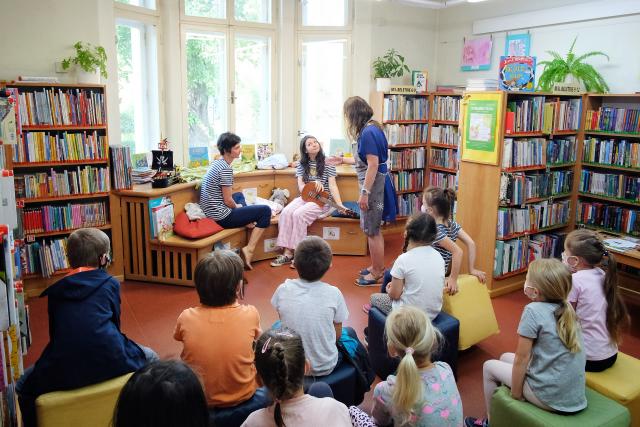 Po minulém představení naší lekce pro MŠ jsou na řadě nejmladší školáci a program spojený s knížkou pro prvňáčka. Dětem ji představujeme a předáváme během slavnostního pasování prvňáčků na čtenáře knihovny, tradičně konaného v dětském oddělení během června v předem objednaných termínech, a to pro všechny rožnovské 1. třídy + vyjíždíme do okolních obecních knihoven. Pasování prvňáčků jako nadstandardní akce vyžaduje účast tří knihovnic, z nichž jedna je průvodkyní dětí a další dvě, v kostýmech, se starají o zábavu a hrají v rolích. Program mívá slavnostní charakter a ustálený scénář, do kterého vždy začleňujeme krátkou dramatizaci, jednoduché „přezkoušení“ dětí ze čtení, pasovací ceremoniál včetně předání darů a nakonec vlastní výběr a vypůjčení knih.