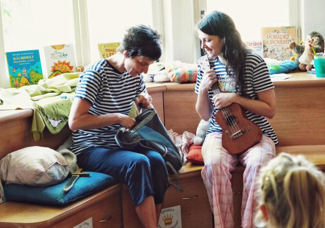 Témata programu bývají volně inspirovaná pohádkovými příběhy nebo postavami. Ten aktuální využívá přímo děje z knížky pro prvňáčka a nevyžaduje žádné složité rekvizity. Vydáváme se s dětmi na výlet, takže bude stačit batůžek s věcmi na sbalení a vybavení do dětského pokojíku: my jsme měli pár plyšáků, pirátskou loď, ukulele (jakýkoli jiný hudební nástroj) a hlavně polštářky. Při hraní se držíme charakterů hlavních hrdinů-sourozenců, jinak spíš improvizujeme, takže uvedené dialogy jsou orientační. Jakub je pomalejší, přemýšlivý, trochu popleta (ten náš ráčkuje), Kristýnka je bystřejší, stále ho popohání a opravuje. Oblečeni jsou jako dvojčata v pyžamech. Průvodkyně dětí/vypravěčka místy přepíná do role přísné, ale milující maminky.