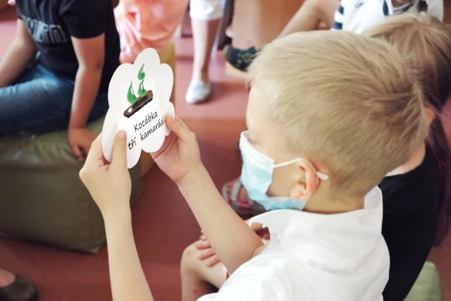 Dvojčata okomentují návrhy dětí, vyzdvihnou plavbu lodí a vzpomenou si, že budou vyrábět a pouštět lodičky z kůry, paní učitelka jim to slíbila. Těší se. Zazpívali jsme si i písničku Kocábka. Oba nahlas přemýšlejí o tom, jaká bude jejich lodička a jaké jí dají jméno. Kristýnka chce lodičku se svým jménem, Kuba se jí směje: „Hlavně, aby to nebyl Titanic.“ Tomu se smějí oba a začnou se strkat a dovádět. Maminka je přijde napomenout a před spaním čte všem pohádku, část kapitoly Lodičky: „Po příchodu do tábora … pojmenovala plavidlo Čerňásek.“ Když dvojčata usnou, maminka si všimne jejich snů. To jsou lodičky podle ilustrací v knize (vytištěné na tvrdší papír ve tvaru obláčku), každá s vymyšleným víceslovným či nějak zapeklitým názvem, např. Hvězda sedmi moří, Odvážný průzkumník, Její Veličenstvo Sofie. Jindy děti četly i delší texty, ale v době covidové stačilo takto. Dětem rozdáme obrázky-sny, mají přečíst a vysvětlit názvy lodiček. Kromě čtení tedy rozvíjíme i vyvozování, fantazii.