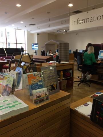 Nakonec svého článku jsem si nechala projekt knihovny, který mě, dá se říct, vzal u srdce. Je zaměřený na pomoc ohroženým skupinám lidí ve městě. Ve spolupráci s pracovníky Citizen Advice Bureau knihovníci aktivně mezi návštěvníky knihovny vyhledávají a kontaktují lidi, kteří jsou očividně v tíživé životní situaci (zdravotní, sociální), promluví s nimi a nabídnou pomoc. Ve 3. patře knihovny je umístěno konzultační pracoviště, kde se střídají specialisté a dobrovolníci schopní poradit v otázkách bydlení, právní pomoci při jednání s úřady, s problémy v práci, orientaci v sociálních dávkách, finančních záležitostech, právech zákazníků, při hledání nového zaměstnání apod. Když jsem poslouchala, kolika lidem už se jim podařilo pomoct (a fotila si přitom vstup do prostor a neuvěřitelně barevný koberec s knihovnickým motivem), netušila jsem ještě, že právě tento projekt oprávněně získal prestižní ocenění v roce 2018 v rámci britské knihovnické organizace CILIP „Libraries Change Lives Award“.
