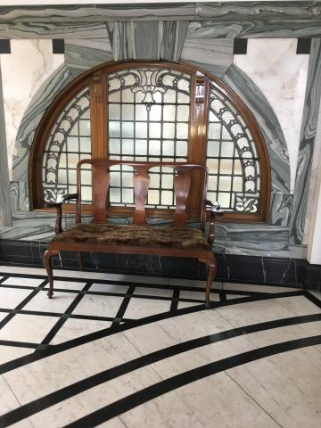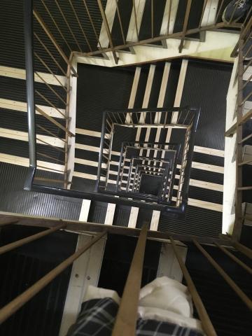 Obdivovala jsem naši průvodkyni, která nás během dvou hodin prováděla pěti nadzemními podlažími. Šli jsme po kamenných reprezentačních schodech a širokých chodbách i se protahovali zúženými průchody s lístkovými katalogy, uličkami mezi regály v zázemí či po klikatém služebním schodišti ve skladech. Výklad o službách a projektech knihovny nám prokládala knihovnickými perličkami: Jak je důležité dát zkušenějším kolegům vědět, do které části se chystáte ve skladech jít, aby koncem pracovní doby věděli, kde vás hledat. Jaká je to radost, když vám čtenář badatel (nebo snad jeho potomci) po víc jak 10 letech vrátí knihu. Jakými rozmary trpí výtahy v budově. Jak se restauruje takový stoletý věšák na deštníky a kabáty. Proč mají v místnostech tak barevné koberce. Na které z vystavených historických fotografií se podařilo zachytit místního ducha, atd.