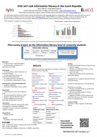 BĚLOHOUBKOVÁ, Lenka . Odborná komise pro informační vzdělávání a informační gramotnost na vysokých školách (Komise IVIG). Duha: Informace o knihách a knihovnách [online]. 2025, 32(3) [cit. 2025-12-11]. ISSN 1804-4255. Dostupné z: https://duha.mzk.cz/clanky/odborna-komise-pro-informacni-vzdelavani-informacni-gramotnost-na-vysokych-skolach-komise