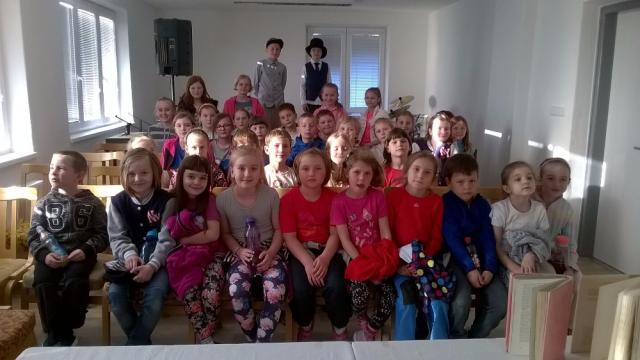 Obec Šebrov má knihovnu velmi malou a je problém v ní větší počet dětí umístit. Zahájení bylo tedy organizováno v zasedací místnosti, kam za dětmi přišel sám pan Andersen (foto1). V rozhovoru všem prozradil spoustu zajímavostí ze svého života. Děti si pak poslechly pohádku, kterou jim přečetla paní knihovnice (foto2). Další program pokračoval v prostorách školy, kde celá skupina také nocovala.