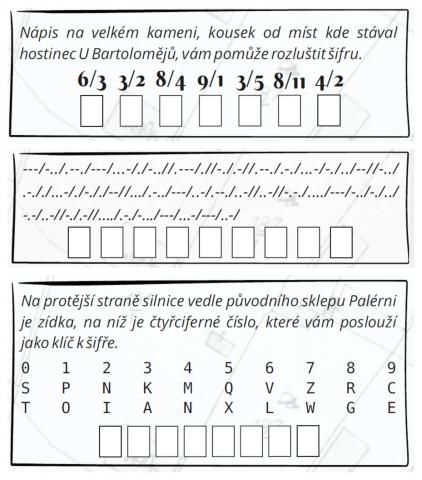 Historie s důrazem na období 1. republiky a následné osudy každého hostince jsou zpracovány na přehledné oboustranné kartičce, která vychází vždy 8. dne v měsíci. (Opět ta osmička!) V nejednom čtenáři se tak kromě očekávání a těšení zažehla i sběratelská vášeň. (No, kdo by nechtěl mít ucelenou kolekci!) Každá kartička je navíc obohacena o jednoduchou šifru, k jejímuž vyřešení je třeba zjistit klíč. Ten je k nalezení pouze na místě, kde hostinec původně stával, a je tedy třeba se tam vypravit. K lokalizaci tohoto místa slouží, kromě mapy, přesné GPS souřadnice a slovní popis současné podoby. Každá šifra má jedinečnou formu (např. Caesarova šifra, Morseova abeceda…) a i klíč má vždy jinou podobu (nápis na zdi, lísteček s heslem, pamětní kámen…). Odměnou za vyluštění šifry je razítko do mapky, a aby čtenáři měli nějakou motivaci, domluvili jsme pro první úspěšné luštitele poukázky do blízké hospůdky. Těm, kterým se šifry louskat nechce, zůstává alespoň hezká sada kartiček s mapou, které jsou vyvedeny na kvalitním papíru a poskládány do praktické obalové kapsičky.