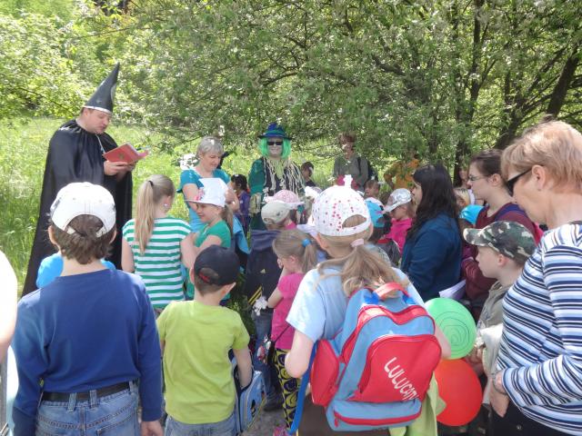 Tentokrát jsme se setkali v kulturním domě obce Kuničky. Sešlo se nás 57 dětí, spolu se svými knihovnicemi a některými rodiči. Nechyběl vodník a další pohádkové bytosti. Byla zde také slavnostně zahájena putovní výstava dětských prací. Recitovali jsme originální šnečí báseň, četli pohádku a pokřtili jsme nově narozené kuničkovské skřítky. Děti měly možnost na setkání vyrobit šnečí ulitu z nafukovacího balónku, vytvořit šnečí očka, které si připevnily na čepičky. Malí šnečci byli pak již připraveni na další společné putování. Naše trasa vedla z obce k malému soukromému rybníčku a měla několik literárních zastavení. Cestou nás stále provázely pohádkové bytosti, děti odpovídaly na otázky, soutěžily a dostaly také drobné odměny.