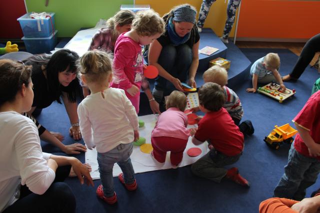 Propagaci provádíme formou plakátků v knihovně, zveřejněním na webu a FB knihovny, v místním tisku (program akcí). Z kapacitních důvodů je nutné přihlášení předem (tel. nebo mailem), děti jsou rozděleny dle věku do skupin 0-23 měsíců a 2–4 roky. Pro příjemnou atmosféru je vhodné, aby počet dětí bez ohledu na prostorové možnosti byl spíše menší než větší, ideálně kolem sedmi škvrňat plus doprovod. Osvědčilo se nám hračky a knihy k prohlížení nechystat předem, ale dát je k dispozici až po programu v rámci volné zábavy. I když si děti často určují průběh setkání samy a my dospělí vycházíme ze vzniklých situací, individuální zaujetí konkrétní hračkou nebo třeba zvukovou knihou hned po vstupu do dětského oddělení neumožňuje přirozené a plynulé navození atmosféry programu a jeho rozjezd.