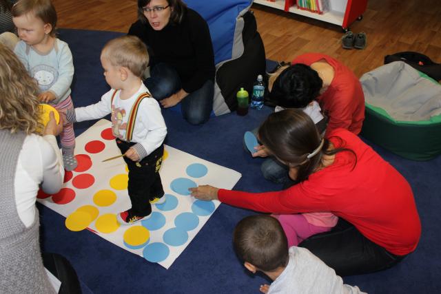 Program s názvem Škvrňata a batolata do knihovny na to tata realizujeme v dětském oddělení od r. 2013. První setkání s maminkami a dětmi jsme zorganizovali v rámci Týdne pro rodinu ve spolupráci s odborem sociálních služeb místního městského úřadu. Navázaná spolupráce funguje dál, a tak se každý rok v květnu, v uvedeném týdnu, schází v knihovně maminky, babičky, někdy i tatínkové či dědečci, aby zjistili, co je v ní nového. Díky finančním prostředkům čerpaným z dotace MK ČR Knihovna 21. století a z dotace JMK čerpané zmiňovaným odborem doplňujeme fond knihovny o zajímavé knihy pro nejmenší, hračky, hudební nástroje (např. dřívka, bubínek, triangl, xylofon, rumba koule), příp. další pomůcky k programům samotným. Pro velký úspěch připravujeme vždy další pokračování v čase podzimním, obvykle v Týdnu knihoven.
