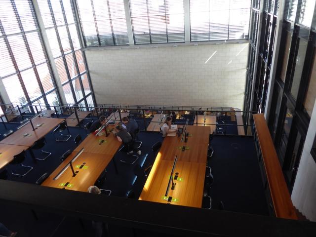 První knihovnou, kterou jsme v rámci cesty navštívili, byla Saská zemská a univerzitní knihovna v Drážďanech. Jedná se o jednu z největších knihoven v Německu, která vznikla v roce 1996 sloučením Saské zemské knihovny a Univerzitní knihovny v Drážďanech. V roce 2002 byla přestěhována do nové budovy. Nové sídlo knihovny se skládá ze dvou budov, které jsou spojeny podzemním prostorem. Jedna část „stropu“ tohoto podzemního prostoru je prosklená a slouží knihovně jako zdroj denního světla, druhá část „stropu“ je travnatá a bývá za příznivého počasí využívána uživateli knihovny k relaxaci a studiu.