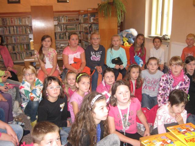 Již tradičně jsme nabídli veřejnosti možnost přihlásit se zdarma za čtenáře, těm, co dlouho nevraceli knihy, možnost vrácení bez upomínacích výloh. Dětem z 1. – 3. tříd základní školy jsem nabídla besedy o knihách, čtení ukázek z připravených knih. Připravila jsem si povídání o knihách, které jsou vhodné pro jejich věk např. Z. Pospíšilová – Naše sousedka je čarodějnice, Školní strašidlo, Kouzelná třída, Domeček pro šneka Palmáce, I. Melounová – Cestování po světě, Povídání se zvířátky, P. Dvořáková – Julie mezi slovy. Největší úspěch u všech dětí měla kniha A. Kastnerové – O líné babičce. Při čtení prvního příběhu o tom, jak chtěla babička řídit nejrychlejší auto na světě, jsme smíchy přímo řvali. Nyní je kniha neustále v oběhu mezi čtenáři.