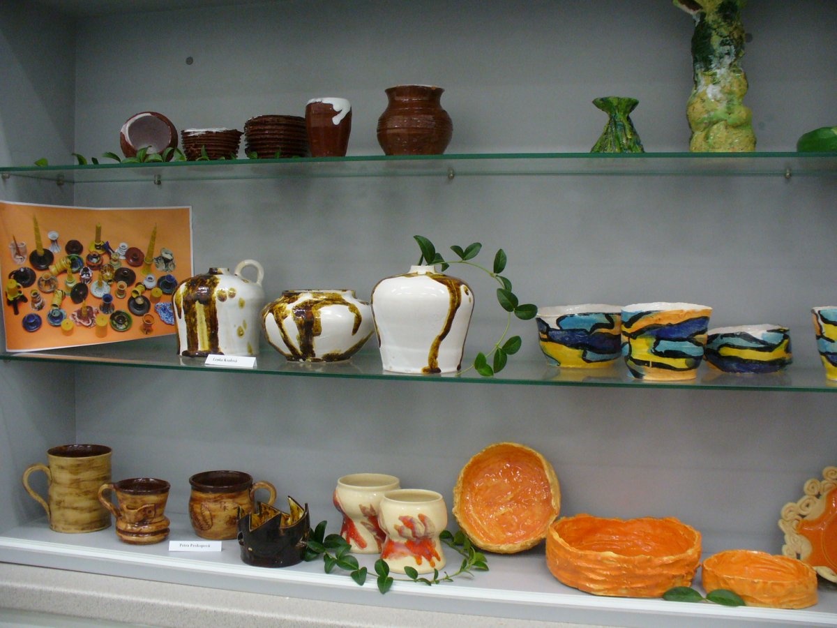 Opominout bychom neměli ani výstavy ve společenském sále, kde má své místo i plastika a užité umění. Za všechny jmenujme letošní společný projekt Simony Koutníčkové a Gena Talleyho, kde vedou vzájemný dialog keramika a dřevořezby.